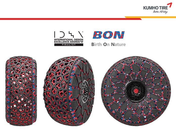 6月29日,錦湖輪胎旗下蘊(yùn)含未來技術(shù)力的概念輪胎BON一舉斬獲美國“2017IDEA設(shè)計(jì)大獎(jiǎng)”——運(yùn)輸設(shè)備領(lǐng)域入圍獎(jiǎng)。2017年剛過半,獲獎(jiǎng)專業(yè)戶錦湖輪胎已將今年世界三大設(shè)計(jì)獎(jiǎng)收入囊中,分別于2月攜多功能車(SUV)的高性能輪胎CRUGEN HP71榮獲德國“iF設(shè)計(jì)大獎(jiǎng)”,4月高性能輪胎翼馳達(dá)ECSTA PS71和采用創(chuàng)新技術(shù)的未來概念輪胎Smasher榮獲“紅點(diǎn)設(shè)計(jì)大獎(jiǎng)”,這足以證明錦湖輪胎的設(shè)計(jì)水準(zhǔn)在國際范圍內(nèi)攀登上了全新的高度。