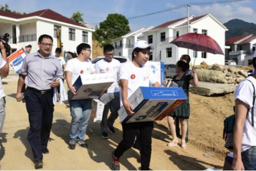 東風(fēng)志愿者頂著烈日,將慰問品送到每家受助戶手中