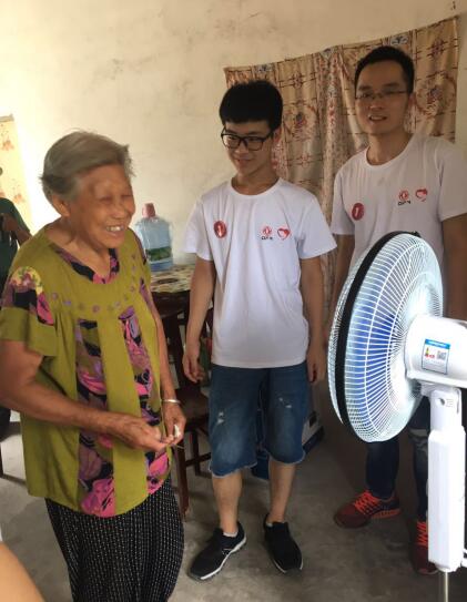 感受著風(fēng)扇帶來的陣陣清涼,受助群眾笑逐顏開