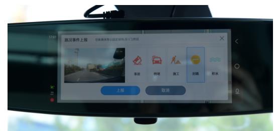 而語音上報功能則更為方便,一切過程均可以通過語音指令完成。用戶只需在喚醒車鏡后說出“我要上報”,然后根據(jù)指令說出事件類型“事故/擁堵/施工/封路/積水”并確認后,車鏡版即可自動完成拍照上報。