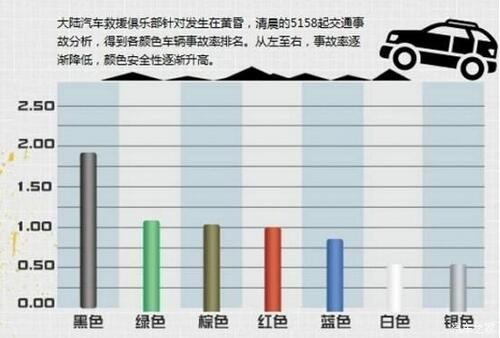其實,這個結(jié)果并不難理解。首先,與路面的對比度越大,安全系數(shù)越高。而黑色是最難以察覺的。形象點來說,所以如果你在黑夜里開一部黑車,還不開大燈,那你對別人來說幾乎就是隱形的,其次,顏色在視覺上是具有收縮性的,黑色車看上去的體積,會比實際更小,黑色的顏色涂裝,可以讓人產(chǎn)生遠(yuǎn)離感,容易使人誤判車距。當(dāng)然,這些都不是影響事故發(fā)生的關(guān)鍵因素,所以買了黑色車的車主不要太緊張,平時照常好好開車,守規(guī)矩就行了。