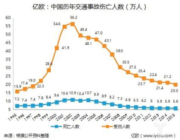 從1995年到2004年,隨著我國機動車擁有量的增加,交通事故發生率和傷亡人數也不斷增長;自2004年《中華人民共和國道路交通安全法》正式實施后,十幾年來各項交通法規逐步完善,交通事故發生率和傷亡人數呈逐年下降趨勢。