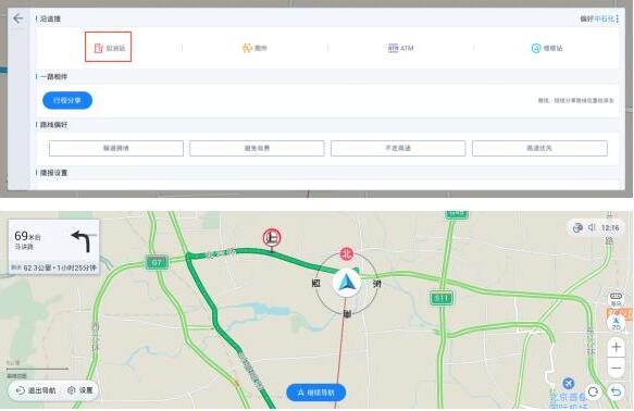 在高德地圖車鏡版上添加途經加油站,即可導航到最順路的加油站加油