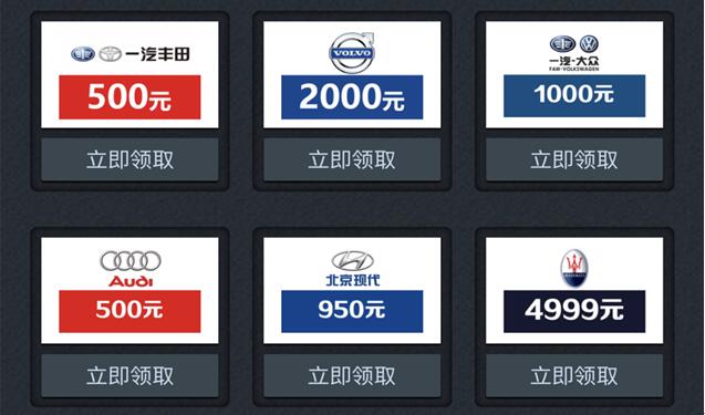 B、領品牌優惠紅包:點擊微信菜單“品牌優惠紅包”填寫姓名、電話即可參與領取意向品牌優惠紅包享受購車折上折優惠;每人限領2張(1個品牌或車型限1張),隨時可領取;活動截止日期:2017年9月6日。