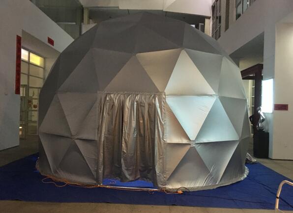直徑10米,高7米,360°球幕影院,進去之后將你帶入星星云團背后,一瞬間畫面又被拉近到另一座星球,星球表面氣流活潑地流動,地面上隨著火山爆發,火紅的煙氣騰空而起。如同發生在眼前,不用戴3D眼鏡也能感受3D效果。