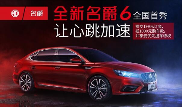 6) 名爵6:預交199元訂金,即可在正式上市后抵1000元購車款,并享受優先提車特權。
