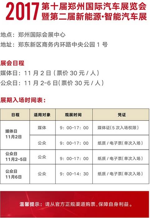 11月2-6日,2017第十屆鄭州國際汽車展覽會暨第二屆新能源·智能汽車展(以下簡稱:鄭州國際車展)開幕在即,本屆車展獨立開辟“特價車專區”現已收羅全城百余款汽車品牌,挑戰價格極限,只等你來!