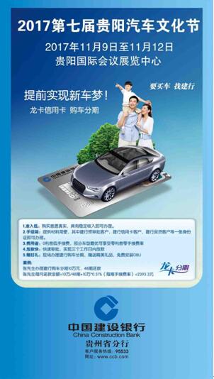 為更好的服務(wù)于林城市民,貴陽汽車文化節(jié)組委會攜手中國建設(shè)銀行貴州省分行,針對所有車展購車客戶推出專屬購車分期優(yōu)惠政策。只要購買意愿真實、具有穩(wěn)定收入均可辦理;提供材料簡便,其中建行預審批客戶、建行信用卡客戶、建行房貸客戶等僅需一張身份證即可辦理;0利息低手續(xù)費,部分車型最優(yōu)可享受零利息零手續(xù)費率。