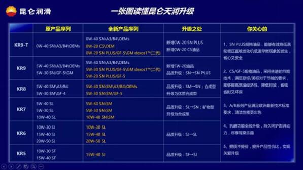 其中全新昆侖天潤(rùn)KR9-T系列產(chǎn)品品質(zhì)全面升級(jí),同時(shí)新增0W-20低黏度級(jí)別產(chǎn)品。國(guó)內(nèi)領(lǐng)先推出滿足歐洲最新節(jié)能環(huán)保ACEA C5標(biāo)準(zhǔn)要求的產(chǎn)品以及滿足API即將頒布的最新技術(shù)標(biāo)準(zhǔn)SN PLUS性能要求的產(chǎn)品,是出保后高端車車主和OEM裝車油的優(yōu)選。