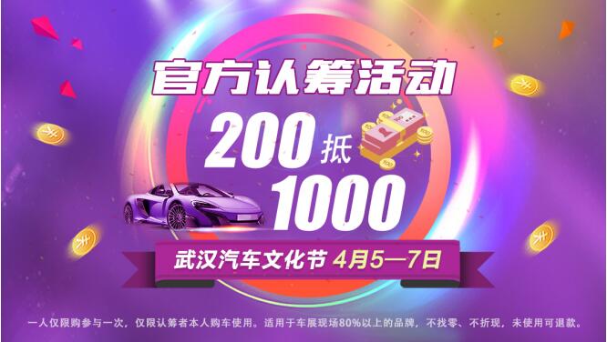 第八屆武漢汽車文化節將于2019年4月5-7日在武漢國際會展中心盛大開幕。本屆汽車文化節全新起航,以“年初鉅惠”為理念,以“科技、時尚、鉅惠”為主題辦展,到時我們主辦方將會聯合各大汽車展商為廣大消費者送上一場年初購車的嘉年華,將購車優惠進行到底,全面觸及購車底價。