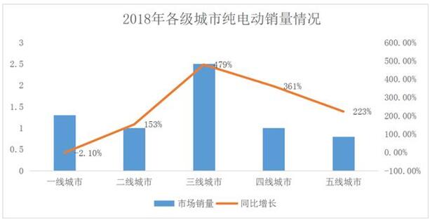 從2018年各級城市新能源汽車的銷量分布情況,不難看出,隨著中國一二線城市限行、限購以及欠發(fā)達地區(qū)經(jīng)濟穩(wěn)步崛起等原因,新能源汽車消費主力重心,正在向三、四線城市快速轉(zhuǎn)移,下沉市場潛藏著巨大的商業(yè)機會。