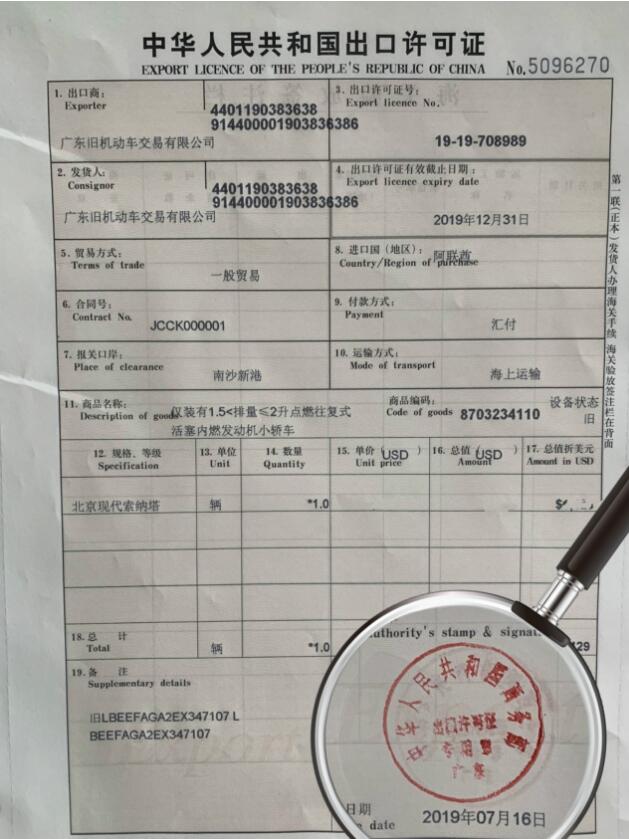 7月16日 在成功過戶后,廣東舊車獲得了全省第一張二手車出口許可證,奠定了完成全國首單二手車出口業務的堅實基礎!