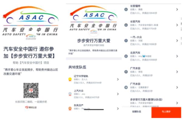 “步步安行 萬里大愛”——公益捐步愛心行動是由汽車安全中國行攜手十余家愛心車企共同發起,通過騰訊公益平臺,根據累計步數進行相應額度的配捐,捐步所募集的資金將用于偏遠山區道路安全設施的改善和希望小學交通安全物資的捐獻。