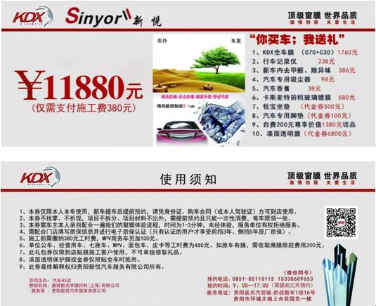 參與方式:凡車展現場成交訂單的客戶憑購車協議(客戶聯)、身份證原件、收據至組委會服務處領取由貴州新悅汽車提供的汽車裝飾大禮包一份(客戶需承擔工時費)。
