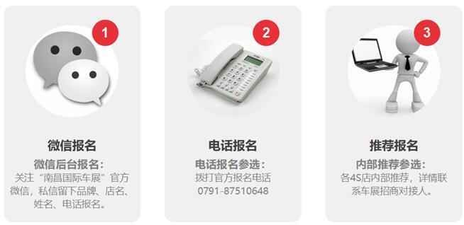 即日起至9月9日(截止時間9月9日下午17:00),各品牌汽車4S店的汽車銷售代表只需關(guān)注“南昌國際車展”官方微信,后臺發(fā)送報(bào)名信息或撥打電話0791—87510648進(jìn)行報(bào)名,還可以由各大汽車品牌單位內(nèi)部評選推薦報(bào)名 。