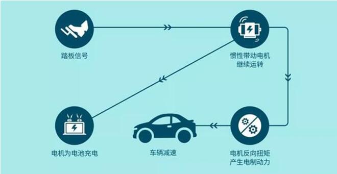 與傳統燃油車相比,純電動汽車的制動系統,除了擁有摩擦制動外,還具有獨特的制動能量回收系統,該系統可將燃油車摩擦制動時所浪費的能量,進行高效回收再利用。其原理可助車輛滑行/制動時,將車輪上產生的動能通過傳遞系統傳遞給電機,電機再以發電方式工作,為動力電池充電,以此實現能量的再生利用,保障車輛減少能耗,繼而延長續航里程。與此同時,產生的電機制動力矩,又可以通過傳動系統對驅動輪施加制動,實現減速停車。