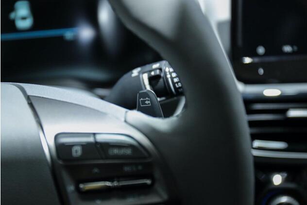 同時,該系統可讓駕駛員踩下制動踏板時,不再是傳遞“力”,而是傳遞電信號給智能助力器。其根據駕駛員操作制動踏板的狀態,智能檢測踏板踩下行程位置的變化,從而確定輪端制動力總需求,結合當前動力電池電量、車速與能量回收等級,對液壓制動力和再生制動力進行智能分配,從而把滑行所產生的能量,轉化為電能重新儲存在電池中。如何將能量回收系統實際應用到車型之中,各家盡顯其招。最具代表性的當屬菲斯塔純電動采用了能量回收撥片設計。該撥片位于方向盤下方,將回收等級設置為0、1、2、3四個擋位,駕駛者以“左加右減”的方式,輕松實現能量的回收。在路況允許的情況下,駕駛員扳住左側撥片不放,還可幫助車輛在一定距離上實現慢慢剎停。整個過程,既高效又便捷,且絲毫不會給駕駛者在駕駛途中帶來困擾。