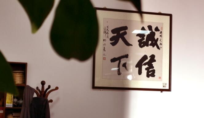 “就好像這幅字,”趙彬說時,手指了指背后墻上的方形字匾,“原本書法大師說給我寫‘誠信贏天下’。我說我贏不了天下,天下不是我的,我就只掙屬于自己該掙的那份錢。”