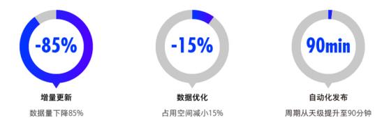高德地圖車機版3.0采用了高德地圖第九代引擎系統——星云引擎,帶來數據規格、定位能力、規劃算法等方面的一系列能力提升,更快、更準、更省流量。以北京為例,采用增量更新方式,可在15秒內完成地圖數據更新;同時數據的發布周期也有過去的天級提升為90分鐘級,帶來更好的數據鮮度。