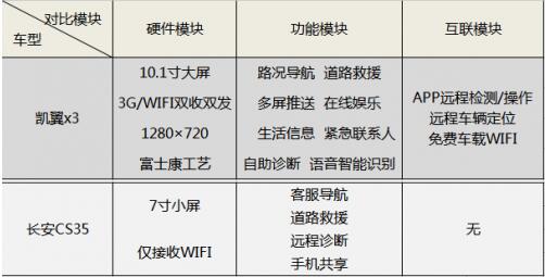 看人先看臉,看車也一樣,長安CS35的7寸屏幕在同類產(chǎn)品中算是“中規(guī)中矩”,但是隨著現(xiàn)在各家車企都在追求超大屏的今天,這樣的做法顯然是不太夠的。就跟家里的電視一樣,誰還不更愛個大屏幕呢?那看起來的效果杠杠的。這樣看來,凱翼X3的10.1寸屏幕就顯得更為符合潮流了,而且3G/WIFI雙收雙發(fā)的設(shè)計(jì)顯然也要比長安CS35的單純WIFI接收要方便實(shí)用的多,尤其在未來網(wǎng)絡(luò)資費(fèi)越來越實(shí)在的情況下,顯然雙收雙發(fā)要更受年輕人的歡迎。