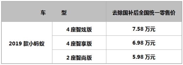 補貼后5.98萬起 城市潮流新物種2019款小螞蟻耀目上市
