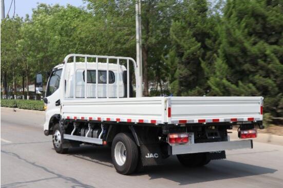 整車采用輕量化設計,在底盤方面,駿鈴采用少片簧懸架+高功率密度主減后橋+無內胎輪胎設計,保證在承載強度不變的情況下,同時兼顧整車駕駛的平穩性及高效的傳動性。不僅如此,貨箱地板骨架大量應用高強鋼,配置鼓式制動器,使整車真正做到了由內而外的“減脂塑身”。