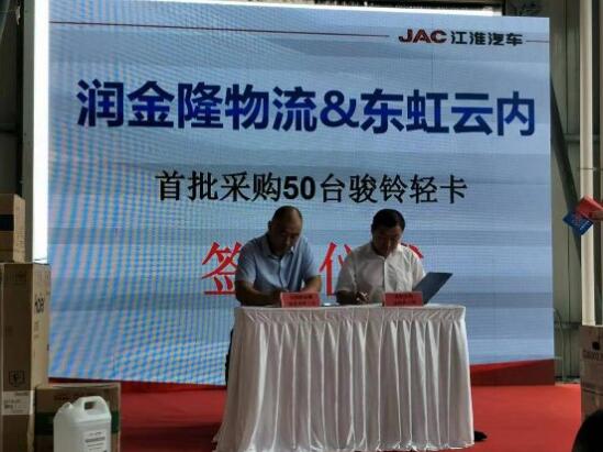 7月21日,駿鈴輕量化車型在沈陽進行了分站上市,現場潤金隆物流與東虹云內現場簽訂了50臺駿鈴輕卡,其負責人在會上也表達了車隊用車的深思熟慮,“車隊的每一臺車,都直接影響公司的運輸效率,江淮駿鈴是我們一直比較信賴的車型,現在輕量化車型的到來,也能夠讓我們未來的運輸效率更上一層樓。”
