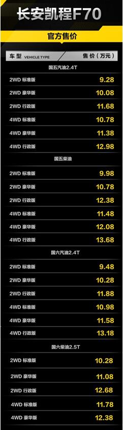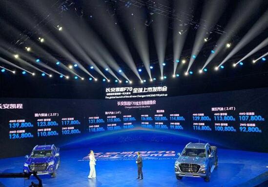 10月28日,長安輕型車旗下全新皮卡——長安凱程F70正式上市。新車共推出滿足國五和國六排放共計(jì)30余種狀態(tài)車型,市場指導(dǎo)價為9.28-13.98萬元。