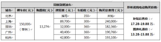 保障用戶續航無憂的同時,昂希諾純電動可讓用戶以更低價格享受都市便捷自在出行。在上海、深圳、廣州、杭州等一線城市,以15萬元的燃油車為例(裸車),加上購置稅、牌照費、車船稅,購車總費用高達19.07-24萬元。截至12月31日前,置換購入昂希諾純電動僅需13.28-15.88萬元,可讓用戶節省約5.79-8.12萬元。
