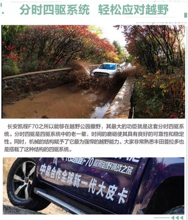 這樣的全面合作也使產(chǎn)品變的十分優(yōu)質(zhì)。無論是900mm的涉水深度,還是全球范圍的導航地圖,又或是80L的超大油箱,長安凱程F70均以其卓越的技術達到了世界領先水平。同時,并不止針對國內(nèi)用戶需求,包括主儀表臺右側(cè)的咖啡杯架設計、方便拖拽的牽引力控制平衡系統(tǒng)的設計等等,這些也均是針對了國外用車習慣所設計而成。以全球化標準研發(fā)加特色本土化跟進,使長安凱程F70不僅符合現(xiàn)國內(nèi)對皮卡產(chǎn)品高檔、舒適、乘用的追求,同時也滿足國際市場對皮卡的要求,以一種更成熟高效的方式完成了走向世界的任務,對中國汽車產(chǎn)業(yè)的國際化進程有極大借鑒意義,各取所長的合作模式相比于合資也更適合未來發(fā)展趨勢。