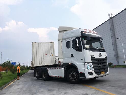 從停車場拖上掛箱駛向上虞分撥站途中,任紅照就打開話匣子介紹說,“我們這輛車采用后提升橋設計,空載時后軸收起,跑起來車速快,還因為減輕輪胎摩擦而省油。遇到重載,落下后軸則有效提升承載能力”。