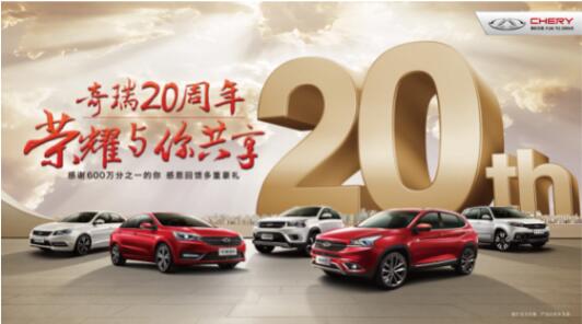 值此奇瑞汽車成立20周年之際,為感恩新老用戶多年來對奇瑞汽車的支持與厚愛,奇瑞官方發布 “奇瑞20周年 榮耀與你共享”促銷活動,即日起至7月31日截止,錯過機會不再。