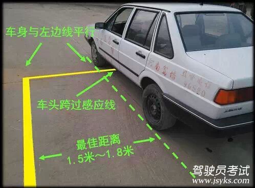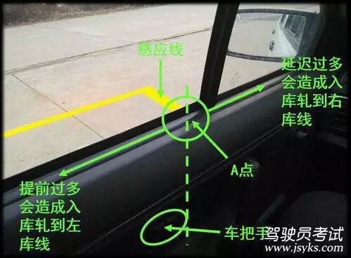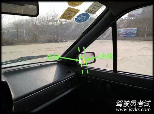 這個(gè)位置停車(chē)能保證汽車(chē)在庫(kù)中的前后距離剛好合適,每個(gè)人可適當(dāng)修正,但一定要記清修正后的觀測(cè)點(diǎn)!
