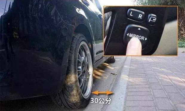 有路邊石的路段,靠邊停車時,可以觀察車身右側與路邊石之間的距離。當右側的前門把手位置,能夠將馬路牙遮住,或馬上要“接觸”時,迅速回方向擺正車身,這樣距離就能準確把控在30cm。
