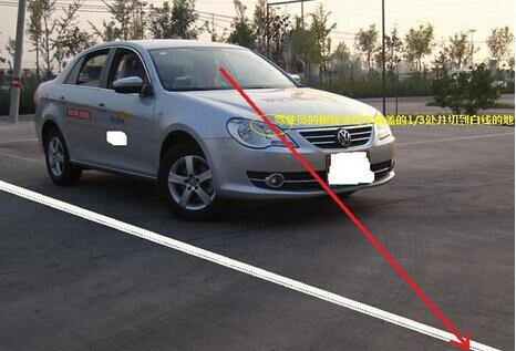 在靠邊停車上栽跟頭的小伙伴基本上都是在30cm這出了錯。其實這個找點的方法和科目二坡道定點停車時的方法是一樣的。最簡單的方法就是:將車頭三等分,保持車頭右側三分一處與邊線重合時,車身距離邊線剛好30cm的距離。在操作過程中,要一直從后視鏡觀察,當參照點與邊線重合時,立即踩離合踩剎車停車。