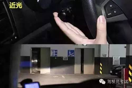 正確操作:示寬燈、遠光燈(此處另一種做法為打開大燈,聽到前照燈切換成遠光燈后再操作,考試時與教練教授為準)