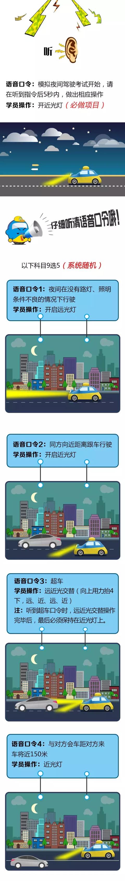 科目三,最新夜間燈光模擬口令(完整版)