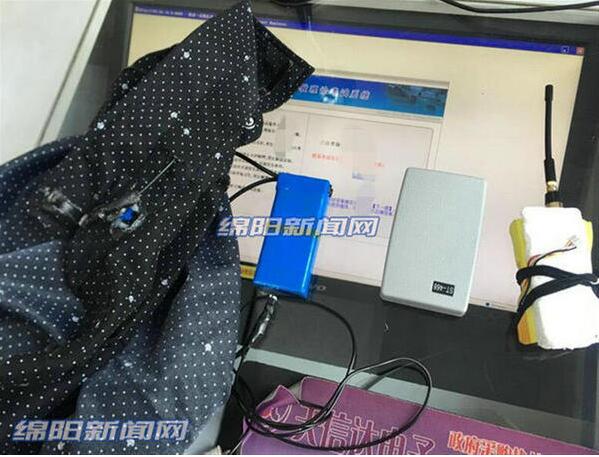 中國綿陽新聞網訊 胸口綁著接收器,領口裝著微型攝像頭……29日上午,綿陽市三臺縣一男子在參加駕考科目三安全文明駕駛考試時,利用高科技無線電通訊設備作弊,被三臺縣交警大隊車管所民警當場查獲。該考生考試資格被取消,已經通過的其他考試科目成績無效,并被處以一年內不得再次申請駕照考試的處罰。